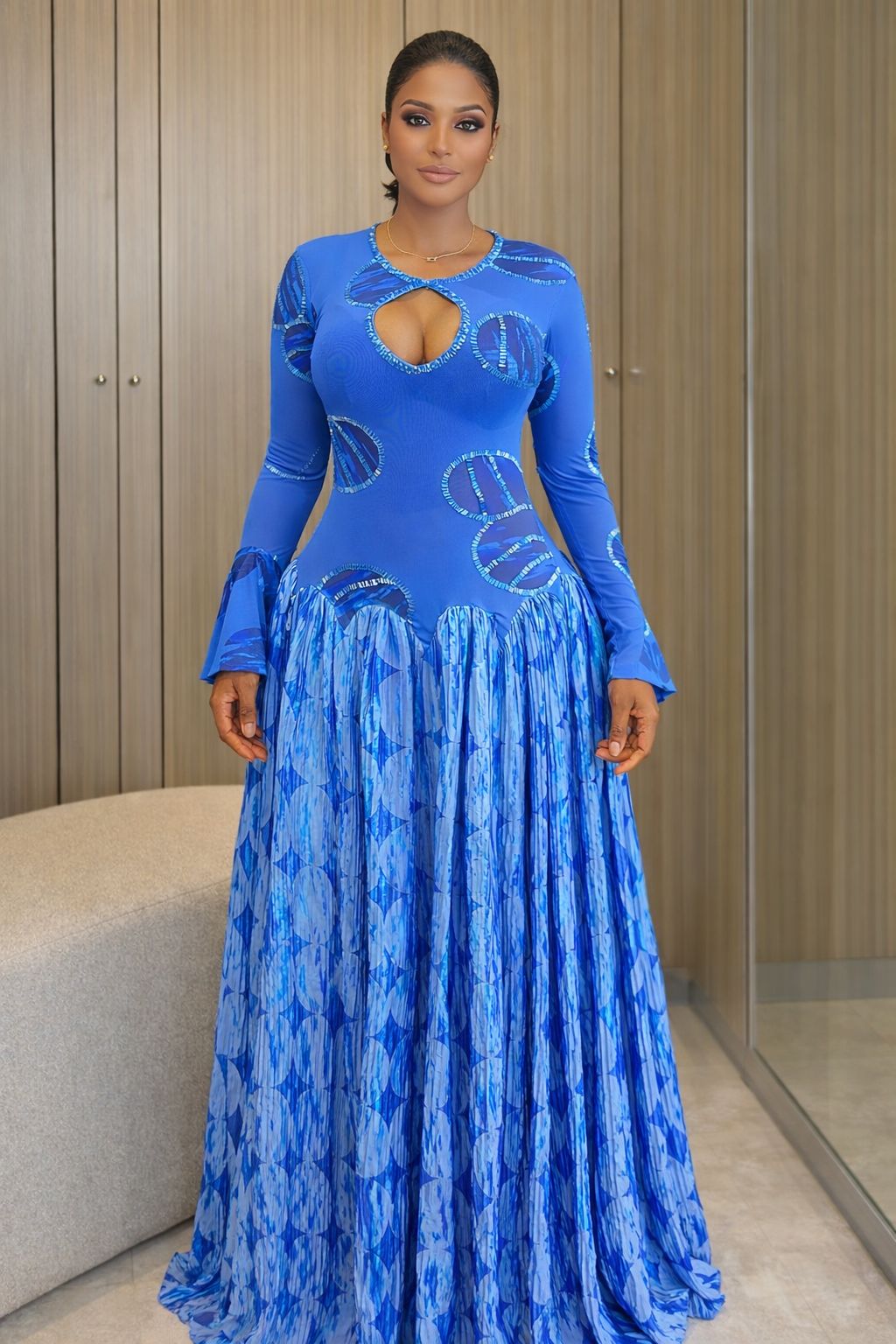This beaded mesh and plisse dress is the perfect blend of elegance and sparkle. The delicate mesh fabric with hand-placed bead details gives a luxurious, feminine look that stands out at any event — dinner dates, owambe, birthdays, or special occasions.